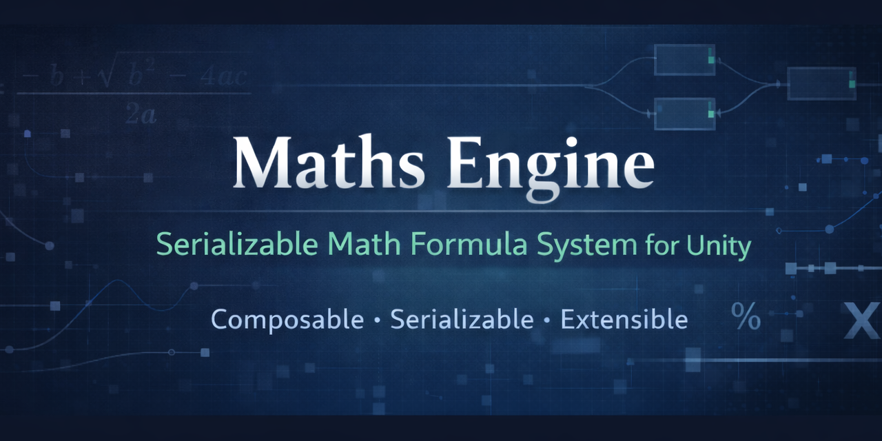 Maths Engine is a Unity plugin that allows designers to visually configure mathematical formulas using ScriptableObjects, Prefabs, and config assets instead of hardcoded code. It transforms math into data. Designers build formulas visually. Programmers evaluate them at runtime.