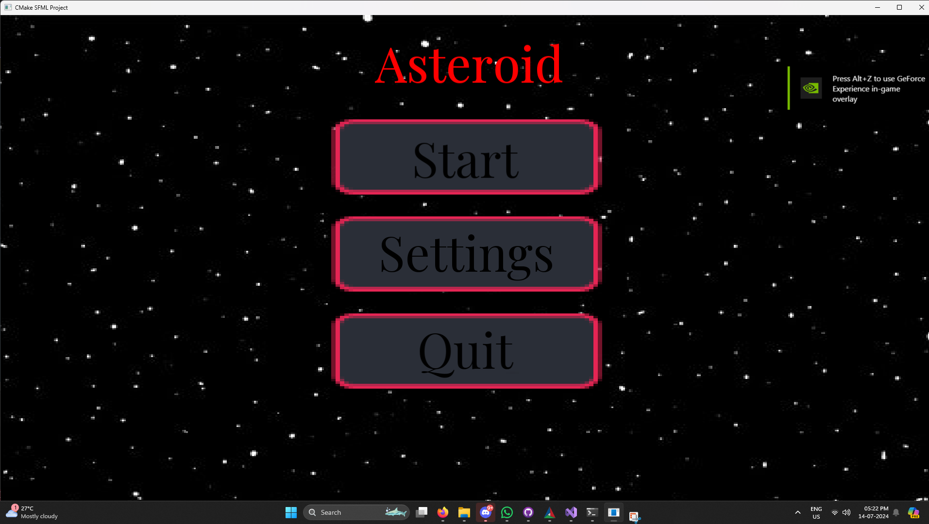 A self-made asteroid game developed using C++ and the Simple and Fast Multimedia Library (SFML)